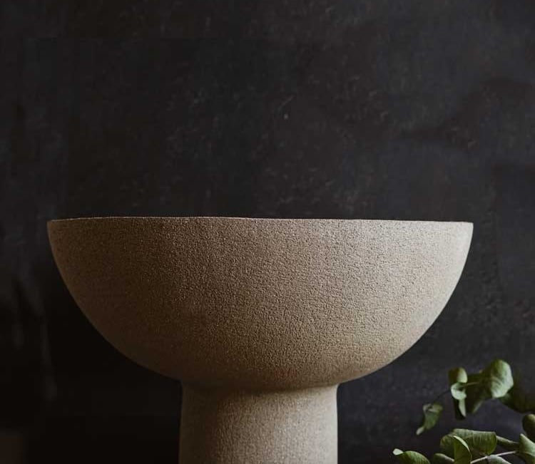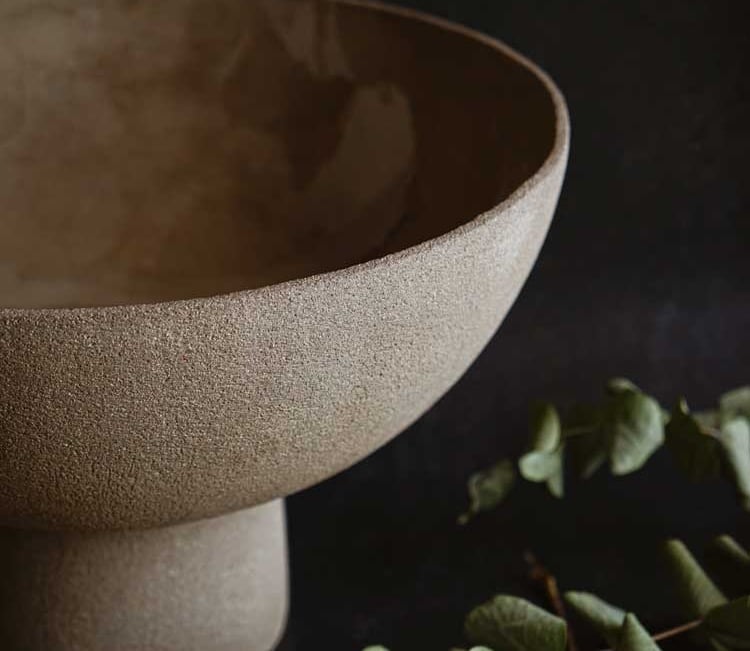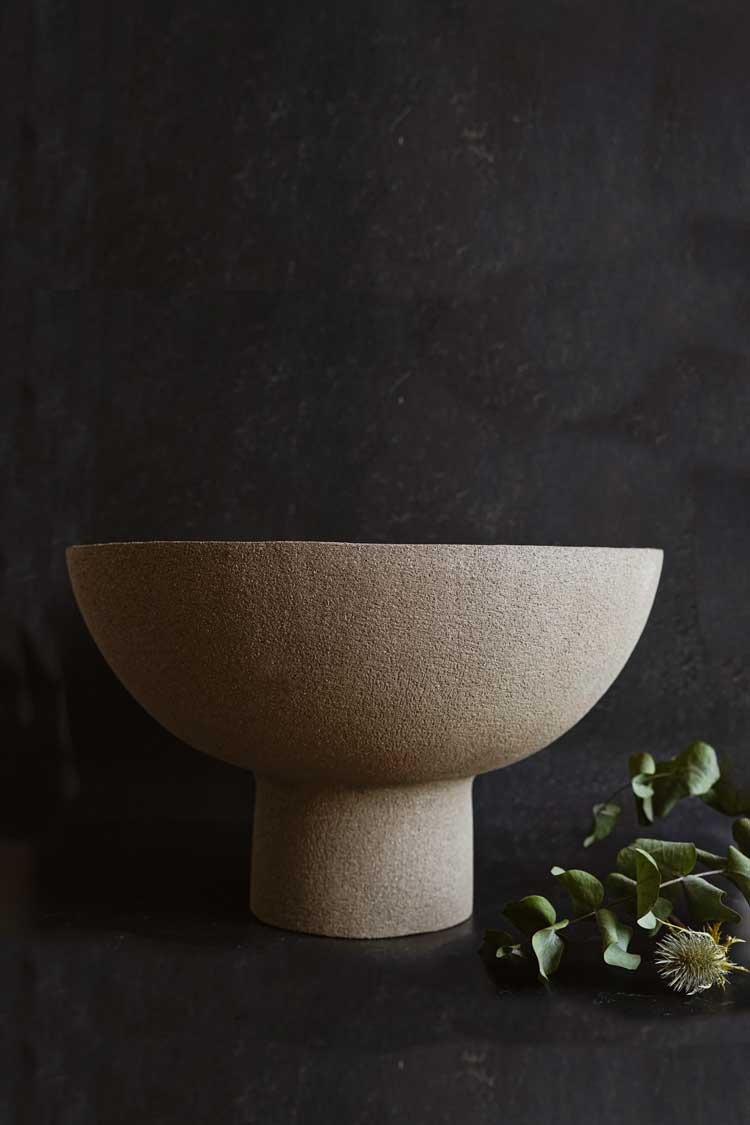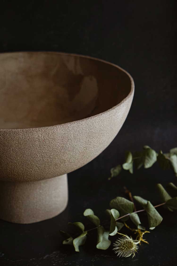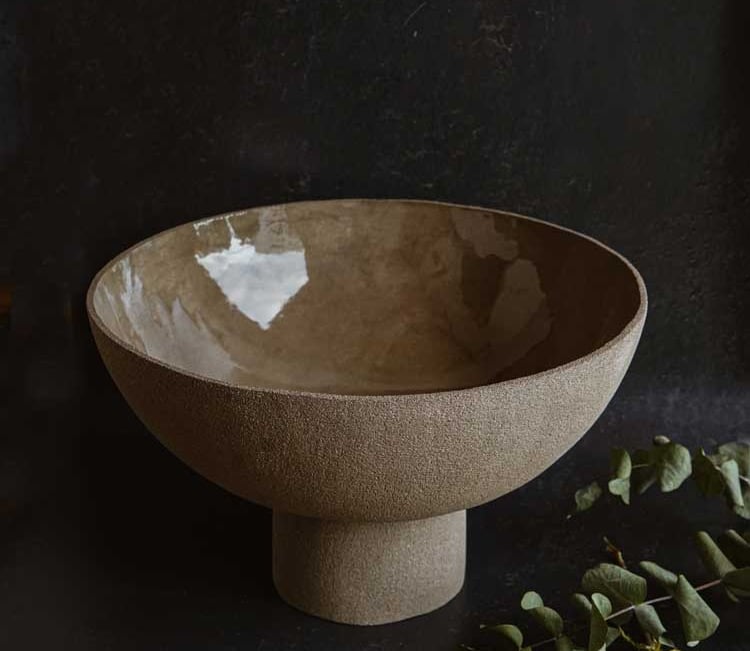 Se trata de un centro de mesa gigante, texturado por fuera y esmaltado brillante por dentro, creando un contraste de texturas.